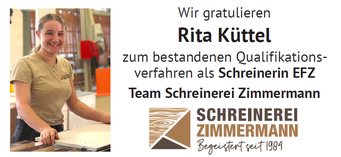 Dich erwarten abwechslungsreiche Arbeiten auf Montage und in der Produktion. Wir sind ein familiärer Betrieb der die Kundenzufriedenheit als oberstes Ziel sieht. Bist du Interessiert? Dann melde dich bei uns via Mail an info@zimmermann-schreinerei.ch oder komm direkt bei uns vorbei.