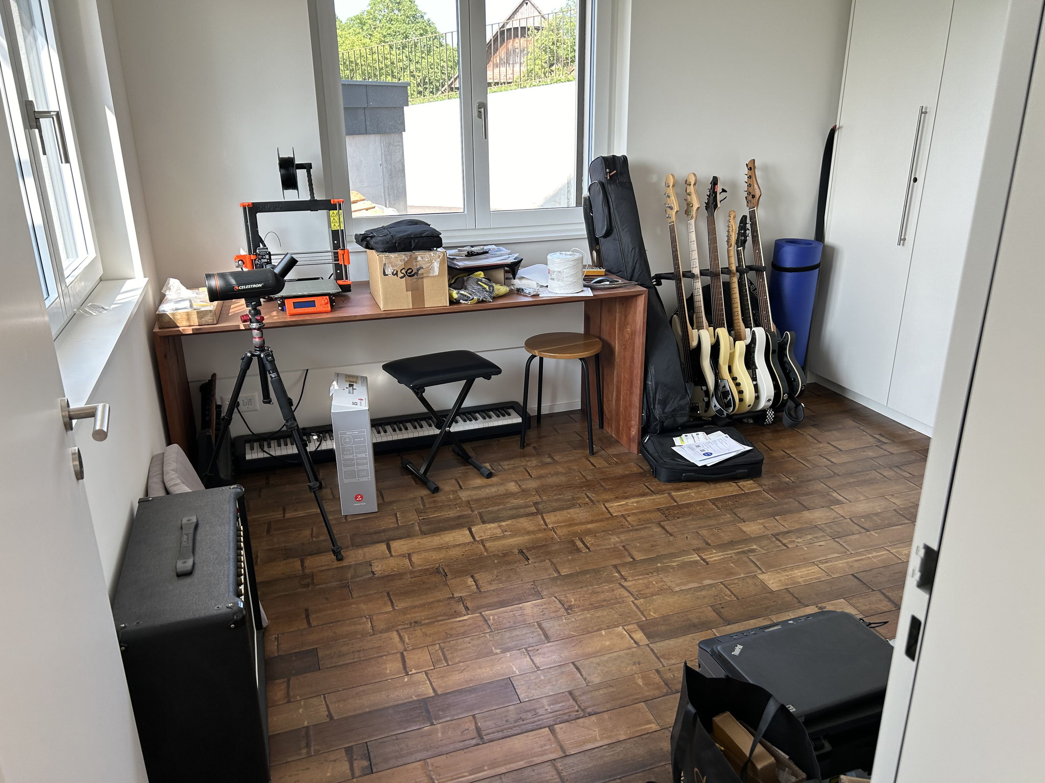 Parkettboden in Esche mit flächenbündigem Bodenschutzglas für Cheminee.